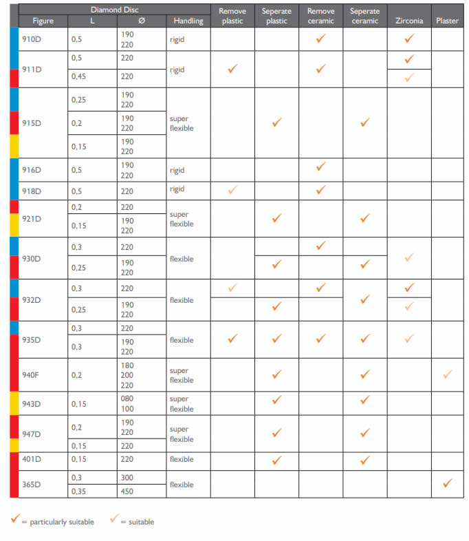 MEISINGER diamond discs are suitable for precise cutting and separation. Whether plastic, ceramics, zirconia or plaster – the comprehensive assortment contains the right discs for every material. Together they all have a tendency to perfection: a precise diamond coating, very long service life and vibration-free work characterize the diamond discs. Almost all instruments are available in different diameters.
